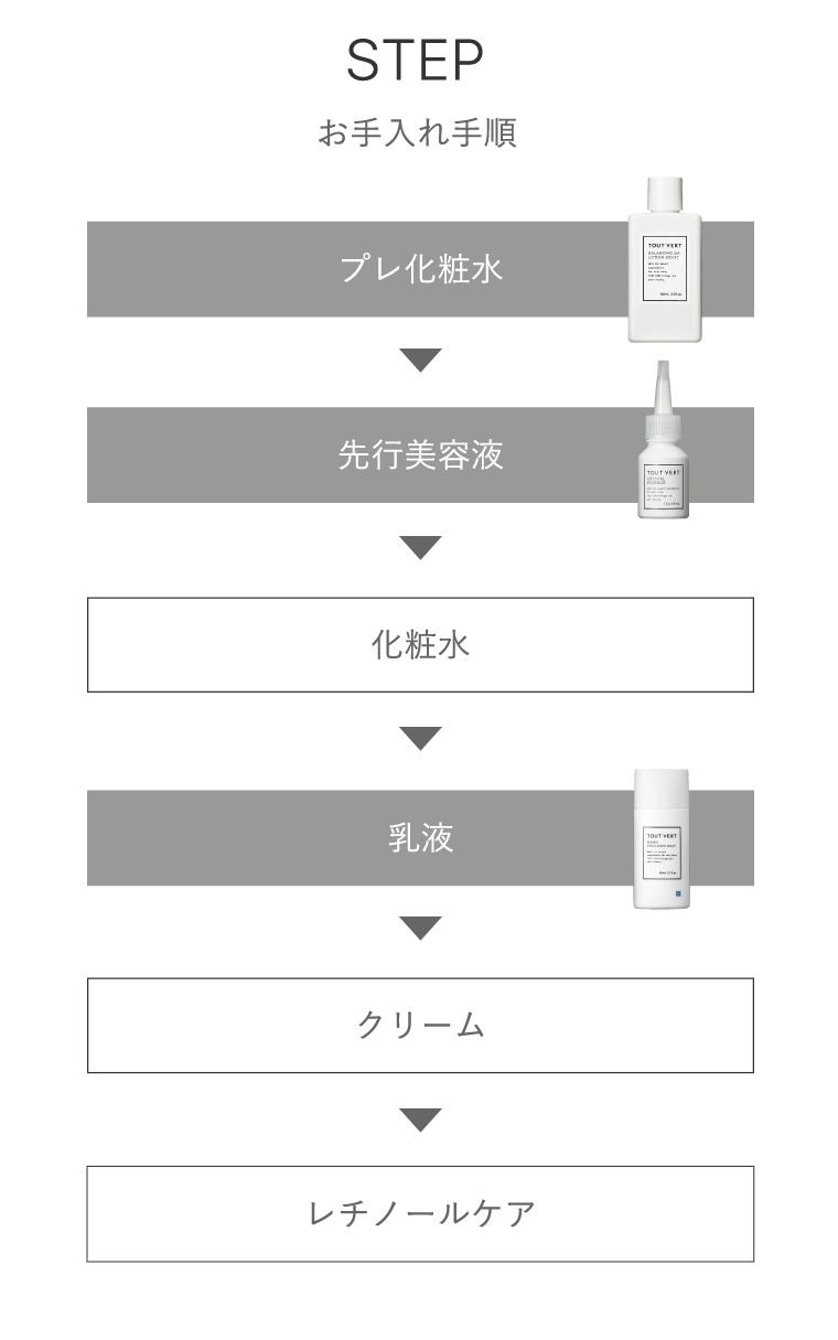 水、グリシルグリシン、BG、アゼロイルジグリシンK、1,2ーヘキサンジオール、アロエベラ葉エキス、グリチルリチン酸2K、PCAーNa、乳酸Na、PCA、セリン、アラニン、グリシン、グルタミン酸、リシンHCl、トレオニン、アルギニン、プロリン、ベタイン、トレハロース、ライム果汁、オレンジ果汁、レモン果汁、サンザシエキス、ナツメ果実エキス、グレープフルーツ果実エキス、リンゴ果実エキス、キハダ樹皮エキス、ペンチレングリコール、カプリリルグリコール、クエン酸、クエン酸Na、フェノキシエタノール