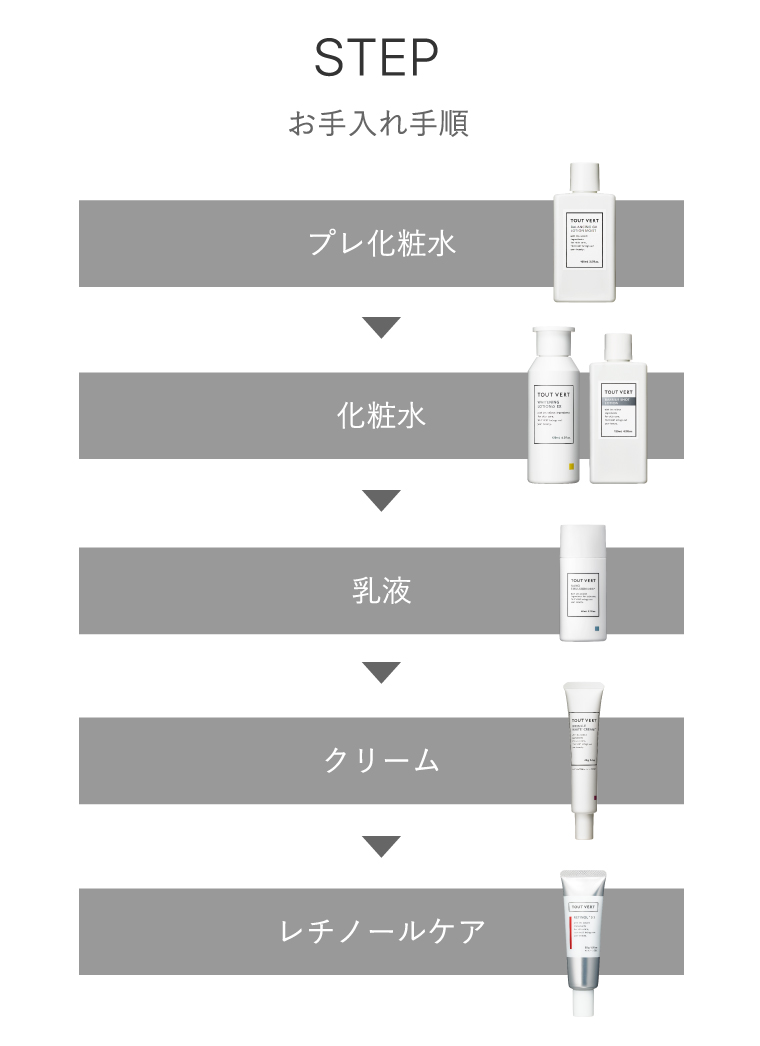 水、ミリスチン酸オクチルドデシル、BG、グリセリン、スクワラン、ジグリセリン、プロパンジオール、イソステアリン酸水添ヒマシ油、水添ナタネ油アルコール、ジメチルイソソルバイド、水添レシチン、フィトステロールズ、レチノイン酸ヒドロキシピナコロン、ヒマワリ種子油、コーン油、トリ(カプリル酸/カプリン酸)グリセリル、パルミチン酸レチノール、レチノイン酸トコフェリル、水添レチノール、レチノール、アセチルシステイン、グルタチオン、セラミドEOP、セラミドNG、セラミドNP、セラミドAG、セラミドAP、アラントイン、ユキノシタエキス、アロエベラ葉エキス、ツボクサ葉エキス、ビルベリー葉エキス、ホップエキス、ビオチン、スイゼンジノリ細胞外多糖体、パルミトイルテトラペプチド-7、パルミトイルトリペプチド-1、酢酸N-プロリルパルミトイルトリペプチド-56、パルミトイルトリペプチド-38、酢酸アミジノベンジルベンジルスルホニルD-セリルホモフェニルアラニンアミド、パルミトイルジペプチド-5ジアミノヒドロキシ酪酸、パルミトイルジペプチド-5ジアミノブチロイルヒドロキシトレオニン、アセチルデカペプチド-3、ヒトオリゴペプチド-1、オリゴペプチド-6、オリゴペプチド-20、ココアンホジ酢酸2Na、トコフェロール、ポリソルベート20、カルボマー、キサンタンガム、ステアリン酸グリセリル、PEG-60水添ヒマシ油、ステアリン酸グリセリル(SE)、カルナウバロウ、フェノキシエタノール、ペンチレングリコール、1,2-ヘキサンジオール、カプリリルグリコール、ヒドロキシプロピルシクロデキストリン、BHT、ジメチコン、フェルラ酸エチル、乳酸Na、クエン酸、PVP、フラーレン、水酸化K