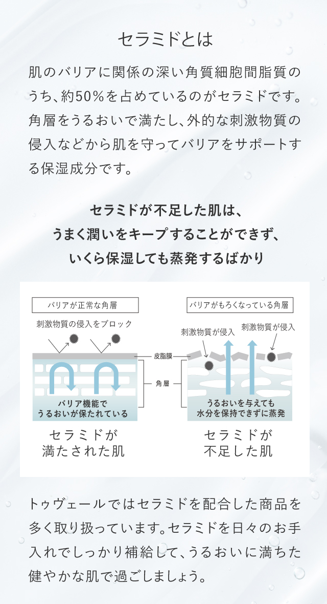 今⽉は乾燥が気になる季節、保湿の要である「セラミド補給」におすすめの商品をご紹介します。