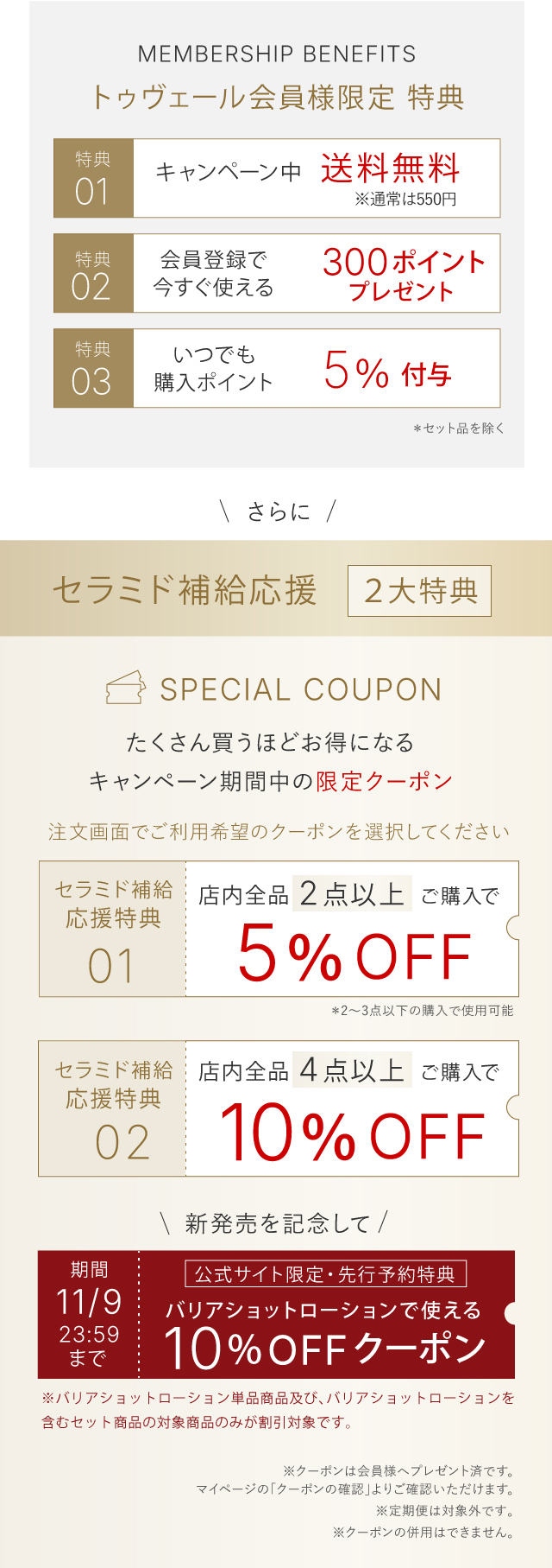 会員登録をしていただくと、キャンペーン時などにクーポンが自動で付与されます。